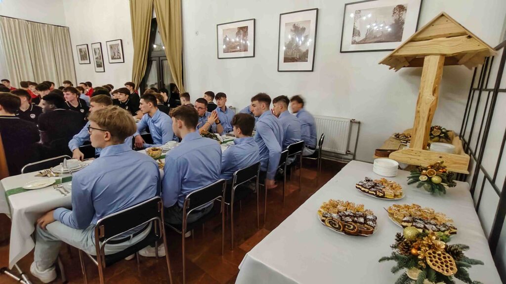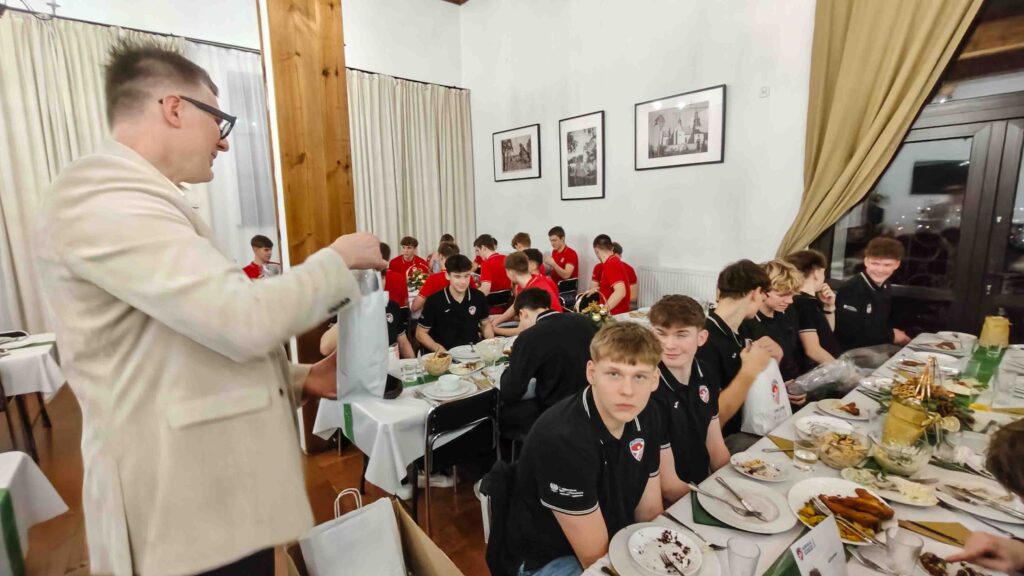 Miłym akcentem było wręczanie przez trenerów i wychowawców swoim podopiecznym prezentów, dzięki którym każda podróż na mecz wyjazdowy będzie bardziej komfortowa. Również uczniowie swoich pedagogów obdarowali upominkami. A potem były wspólne rozmowy, delektowanie się świątecznymi potrawami oraz śpiewanie kolęd.