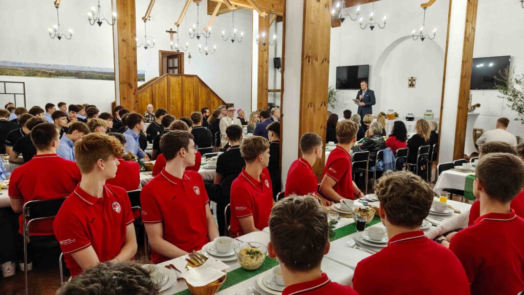 W sali dolnej w klasztorze na Karczówce spotkaliśmy się w czwartek na tradycyjnym spotkaniu bożonarodzeniowym. Przy świątecznym stole usiedli uczniowie, trenerzy, nauczyciele SMS ZPRP Kielce oraz zaproszeni goście z księdzem biskupem Marianem Florczykiem, delegatem KEP ds. duszpasterstwa sportowców oraz Sławomirem Szmalem, prezes Związku Piłki Ręcznej w Polsce.
